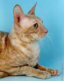 El Cornish Rex es un gato de tamaño pequeño a mediano. Debido a su postura erguida, parece un gato grande hasta que lo levantas. Visto de perfil, la parte inferior de su cuerpo sigue la curva ascendente de la columna vertebral.