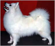 El United Kennel Club reconoce dos tamaños: miniatura y estándar. Miniatura se refiere a los machos de 30 a 38 cm (12 a 15 pulgadas), y hembras de 28 a 35 cm (11 a 14 pulgadas). El tamaño estándar se refiere a los machos de entre 38 y 48 cm (15 a 19 pulgadas) y hembras de entre 35 y 46 cm (14 a 18 pulgadas). El American Kennel Club reconoce tres tamaños: toy, miniatura y estándar. Toy mide de 23 a 30 cm (9 a 12 pulgadas); miniatura, de 30 a 38 cm (12 a 15 pulgadas), y estándar, de 38 a 48 cm (15 a 19 pulgadas). El esquimal es una raza nórdica o del norte, con un pelaje doble, espeso, blanco o beige. Tiene orejas triangulares erectas, cabeza en forma de cuña y cola que se enrosca sobre la espalda. El pelaje es espeso, pero no ondulado.