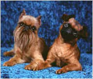 El grifo de Bruselas desciende del affenpinscher alemán y del perro callejero belga, dando lugar, en el siglo XVII, al grifo, un perro de pelaje áspero. En el siglo XIX, el grifo se cruzó con el carlino, dando lugar a la variedad de pelaje liso. La raza se volvió común montando y, supuestamente, custodiando los coches de caballos belgas. A finales del siglo XIX, la raza se incorporó a las pistas de exposiciones caninas belgas; su popularidad creció y, a principios del siglo XX, ya era muy solicitada por la clase alta belga. El primer grifo de Bruselas se registró en el American Kennel Club en 1910. Estos perros pequeños pertenecen al grupo de los perros miniatura y son una excelente mascota de compañía.